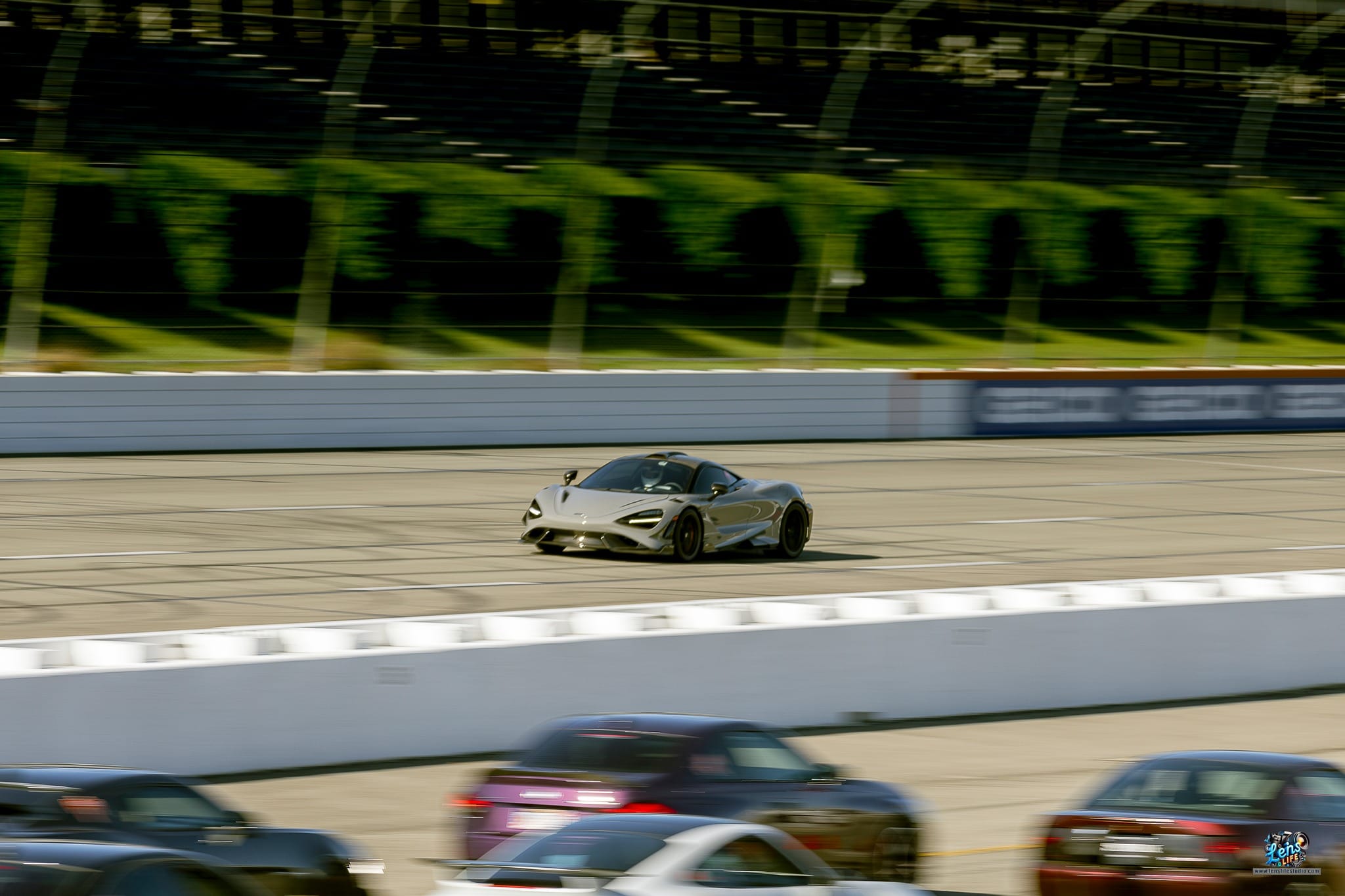 We spent a good portion of the day in the pit area, capturing candid moments of drivers and their crews as they prepped their cars for the races. The energy in the pit is always electric, and it’s one of the best places to get up close to the action. We also ventured to several vantage points along the side of the raceway, where we got some incredible shots of cars zooming by at full speed. One of the best spots we found was the top viewer’s area on the second floor, giving us a clear view of the entire raceway for some wide-angle shots.
