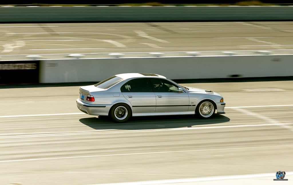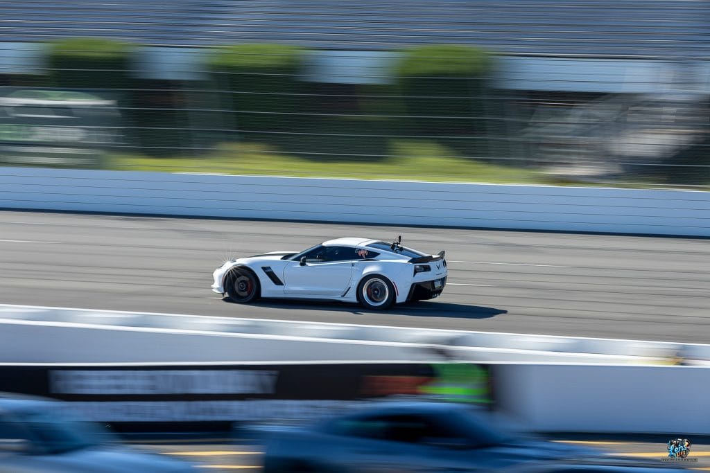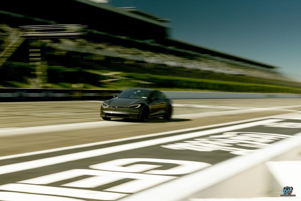 One of the most exciting parts of the event was the abundance of Corvettes and BMWs on the track. These cars dominated the event and each brought its own level of thrill. It was a real treat for us to photograph and film them up close. But among the gas-powered cars, one vehicle that really caught our attention was a sleek gray Tesla. Its electric power and performance on the track were nothing short of impressive, standing out in the midst of more traditional racers.